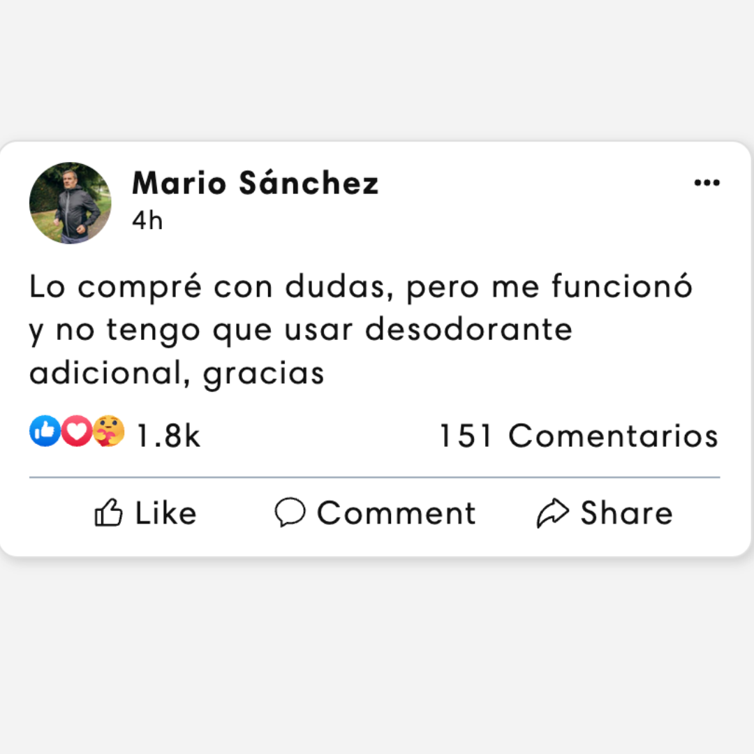 Vives cambiándote la ropa por el sudor, lidiando con manchas en tus camisetas y desodorantes que no duran, afectando tu comodidad y tu confianza cada día.